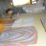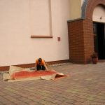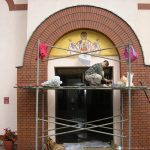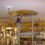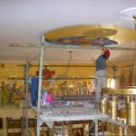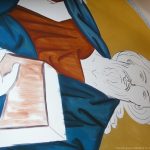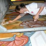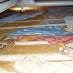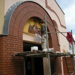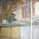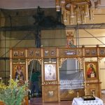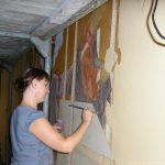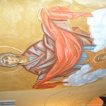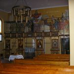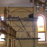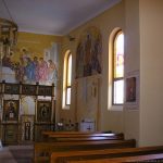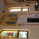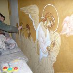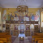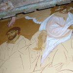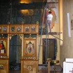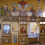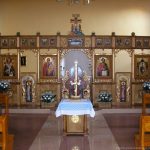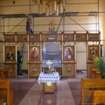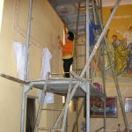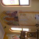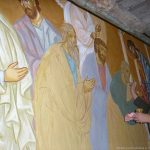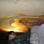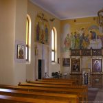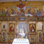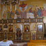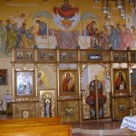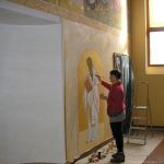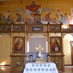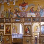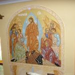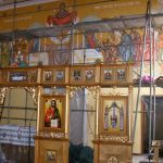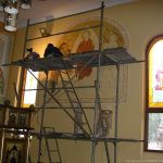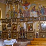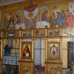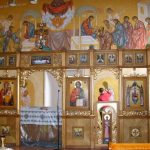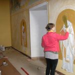 Plan zakresu prac został przygotowany przez proboszcza ks. Mitrata Juliana Hojniaka, a pani Małgorzata wykonała pomiary i projekt. Prace nad wykonaniem fresków podzielono na dwa etapy. Pierwsza część została wykonana we wrześniu 2013. Na centralnej ścianie pojawiła sie scena Eucharystii, ponad nią ikona Matki Bożej Pokrowy (Opiekunki). Poniżej po obu stronach ołtarza znalazły się dwie postacie twórców liturgii bizantyjskiej – św. Bazyli Wielki i św. Jan Chryzostom. Poświecenie malowideł odbyło się podczas parafialnego odpustu w październiku 2013r.